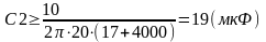 20% реальную емкость конденсатора C2, ближайшим в большую сторону к рассчитанному значению емкости имеет конденсатор с номиналом 22 мкФ.