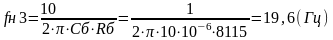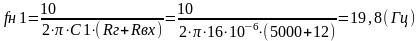 13. Определим нижние граничные частоты при выбранных емкостях C1, C2 и Сэ:
