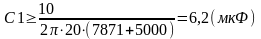 20% реальную емкость конденсатора C1, ближайшим большую сторону к рассчитанному значению емкости имеет конденсатор с номиналом 6,8 мкФ.