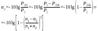 В результате мощность на выходе волокна уменьшается по сравнению с падающей мощностью. Такие потери за счет отражения получили название Френелевских потерь, рассчитываемых по формуле: