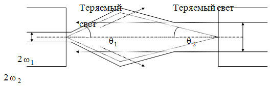 В одномодовых световодах внутренние потери не зависят от направления передачи и определяются только несоответствием диаметров поля моды сопрягаемых волокон ( рис. 2).