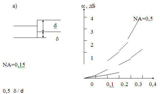 Внутренние потери. Внутренние потери являются следствием соединения двух неодинаковых волокон, обладающих, в основном, различными диаметрами и числовой апертурой.