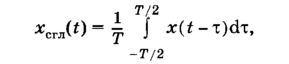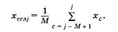 Соотношение (6) является приближением к (5), поскольку на практике в большинстве случаев обработка ведется в дискретной форме, хотя иногда и используется сглаживание аналоговых сигналов с помощью интегрирующих RС-цепочек, интегрирующих операционных усилителей или других аналоговых фильтров. Алгоритмы (5) и (6) физически реализуемы и могут работать в реальном времени, поскольку для расчета усредненного значения используются значения (отсчеты) сигнала только в предшествующие моменты времени. Однако это приводит к задержке информативной составляющей на время T/2 или на М/2 отсчетов. От этого недостатка свободен алгоритм