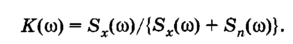 К задачам сглаживания примыкает задача фильтрации информационного сигнала с энергетическим спектром Sx(w) на фоне шума с энергетическим спектром Sn(w). Частотная характеристика фильтра, обеспечивающего наименьшую среднеквадратичную погрешность воспроизведения информативной составляющей, задается соотношением