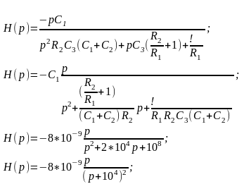 Согласно заданию, временные характеристики получим по найденной передаточной функции H(p).