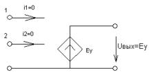 По первому свойству можно предположить, что ток i1 практически равен нулю. Аналогично ток i2=0 Учитывая 3-е свойство, можно записать, что