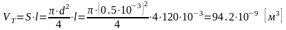 3. Для визначення постійної часу термометра без захисного кожуха скористуємося рівнянням (3). Розрахуємо об’єм мідного дроту, з якого виготовлено датчик.