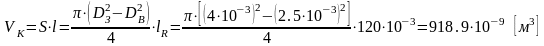 4. Для визначення постійної часу термометра із захисним кожухом скористуємося рівнянням (6). Розрахуємо об’єм захисного кожуха.