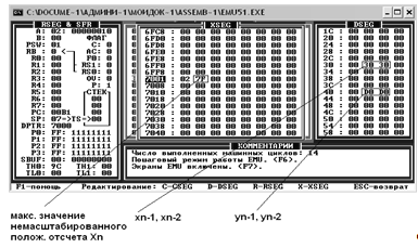 4) Формирование сигнала запроса прерывания от АЦП по входу INT0 (Alt + i) и выполнение в пошаговом режиме рабочего цикла программы.