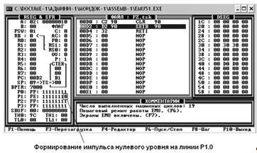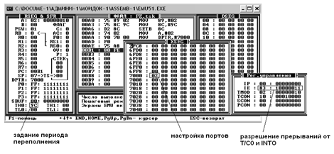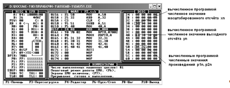 4). Формирование сигнала запроса прерывания от Т/С0 (Alt + t) и выполнение в пошаговом режиме программного модуля формирования импульса пуска АЦП.