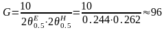 θH, θE – углы, отсчитываемые от оси рупора, рад.