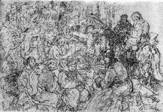 Новое содержание жизни художник остро чувствовал и стремился воплотить его в величественных, монументальных образах. Эти поиски прослеживаются в рисунках с различными сюжетными мотивами, в том числе и пейзажными.