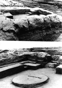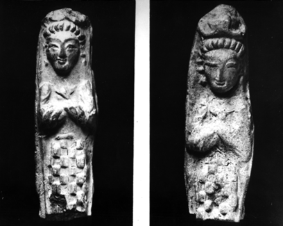 При раскопках были найдены две терракотовые фигурки фравашей, оттиснутые в формах. Лица у них горбоносые с миндалевидными глазами. В ушах серьги, головы увенчаны коронами.