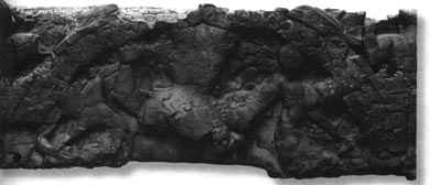 В числе находок – сердоликовая печать-инталья с резным изображением конегрифона. При расчистке парадного зала было собрано большое количество обугленных деталей деревянного перекрытия, украшенных резьбой.