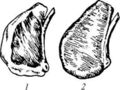 Рис. 81. Котлети: 1 – натуральна; 2 — відбивна.