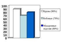 Сравнение содержания крахмала в крупах, бобовых и макаронных изделиях (в %)