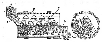Рис. 3. Схема мытья овощей в барабанной овощемоечной машине