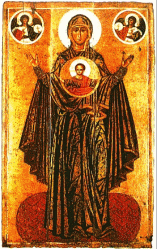 Великая Панагия (греч. - Всесвятая) - наименование иконы Богоматери, известной, также как Богоматерь Знамение и Нерушимая Стена. Представляет Богоматерь с поднятыми и раскинутыми в стороны руками (иконографический тип Оранта), несущую на груди изображение Христа-Эммануила в круглом медальоне.
