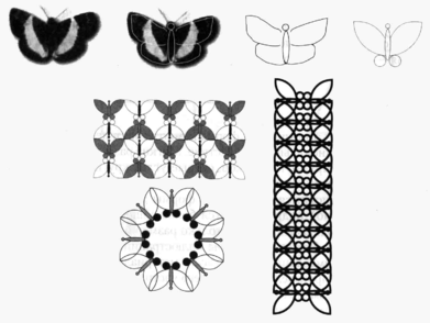 Из полученных графических заготовок можно создать интересные композиции, комбинаторные декоративные орнаменты (рис. 2). Трансформация формы природного аналога широко используется в технической эстетике.
