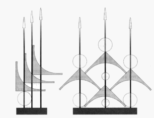 Равновесие формы - состояние, при котором все элементы сбалансированы между собой, - вызывает ощущение покоя и уверенности. Равновесие является безусловным в композициях с вертикальной осью симметрии. Более сложным и интересным способом оно достигается при асимметричной компоновке элементов. Композиционное равновесие может быть устойчивым, статичным (рис. 3, а) или отличается внутренней динамикой (рис. 3, б).