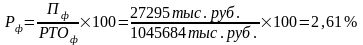 Рентабельность товарооборота (Р) исчисляется как процентное отношение прибыли (П) к объему розничного товарооборота (РТО):