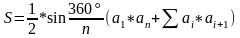 S4 = (1/2)*sin(360/8)*(0,630*0,112+0,630*0,559+0,559*0,312+0,312*0,275+ +0,275*0,630+0,630*0,450+0,450*0,464+0,464*0,175+0,175*0,486+0,486*0,072+ +0,072*0,207+0,207*0,112) = 0.5614
