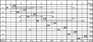 За истекший период на марку А переключились 7 семей с марки B. На марку В перешли 13 семей с марки C и 6 семей с марки D. Вместе с этим, 11 семей с марки A перешли на марку С. На марку D переключились 5 семей с марки A и 9 семей с марки С. На марку H переключилось 45 семей с марки D. На марку G перешли 15 семей с марки A и 20 семей с марки D. Вместе с этим, 30 семей с марки F перешли на марку С. На марку E переключилось 15 семей с марки B и 40 семей с марки С.