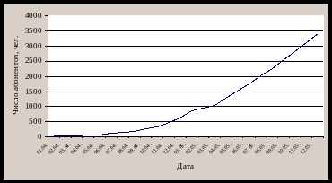 Согласно данным приведенным в таблице 2.2 происходит ежемесячное увеличение числа абонентов, пользующихся услугой доступа к Интернет по технологии DSL. С момента начала предоставления услуги к ней подключилось 1038 абонентов. В среднем увеличение числа абонентов составило 76,0 человек в месяц.
