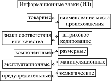 Информационные знаки (ИЗ) – условные обозначения, предназначенные для идентификации отдельных или совокупных характеристик товара. Информационные знаки характерны в основном для производственной маркировки. Иногда информация ИЗ бывает доступна только профессионалам и требует специальной расшифровки.