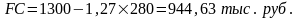 - суммарные (валовые) издержки соответствующие максимальному уровню производства, равные 1300 тыс. руб.
