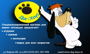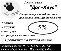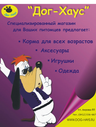 Для зоомагазина «Дог-Хаус» используется, такая реклама в газете:
