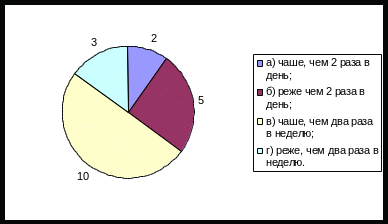 в) чаше, чем два раза в неделю;