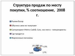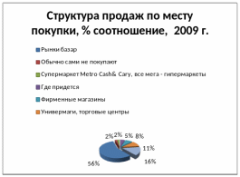 Немаловажным фактором становится в последнее время также специфика мест продажи — нередко динамика продаж напрямую зависит от того, находится ли магазин в отдельном здании либо расположен в ТЦ. Поэтому ужесточение требований со стороны покупателей заставляет розничных операторов пересматривать стратегии развития и уделять первоочередное внимание формату магазина и его маркетинговой поддержке.