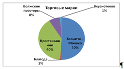 При анализе торговой марки, лидерами опроса стали Тольятти – Молоко 50% и Простаквашино 40%. Основным критерием выбора этих марок послужила реклама и местное производство продукции. Оставшиеся торговые марки разделили процентное соотношение по индивидуальным особенностям респондентов.