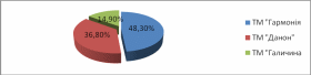 Рис. 1 Частка ринку компанії в сегменті йогурту ТМ «Гармонія», ТМ «Данон» і ТМ «Галичина» за 2009 рік