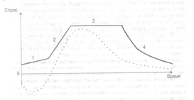Самая общая, так называемая традиционная, модель жизненного цикла на этапе коммерциализации товара (рисунок 1) графически изображается в виде кривой динамики объема продаж товара, определяемого спросом на него. Дополнительной (на рисунке пунктирной) кривой изображается динамика прибыли (суммарной у всех производителей).