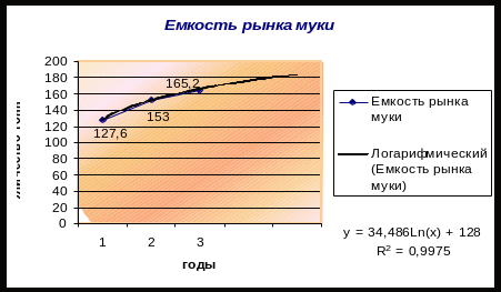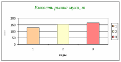 Емкость рынка муки в первом году составила 154,4 тонны, во втором году - 153,0, в третьем - 165,2.