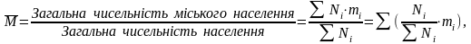 де Ni – чисельність населення у регіоні і, mi – частка міського населення у регіоні і.