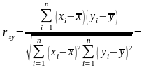 На основании исходных данных найдем суммы и средние значения x и y: