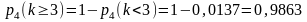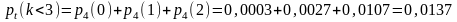 - находим из таблицы значений функции распределения Пуассона для k=3 и a=