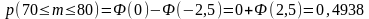 Вероятность появления события в каждом из независимых испытаний равна 0,8. Найти вероятность того, что в 100 испытаниях событие появится не менее 70 и не более 80 раз.