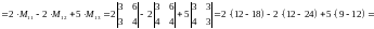 | c2,1 = | -3 | * | 1 | + | 4 | * | 4 | = | -3 | + | 16 | = | 13 | |||||||||||||||||||||||||||||||||||||
