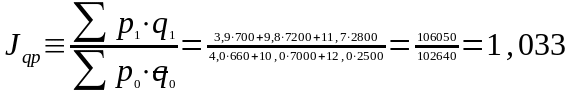 где q1, q0 - количество продукции в натуральном выражении в отчетном и базисном периодах.