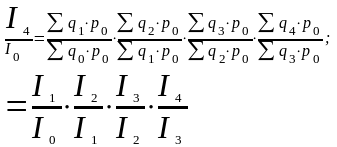 произведение промежуточных по периодам ценных индексов дает базисный индекс последнего периода, т.е.