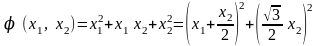 данная квадратичная форма не является знакоопределенной, так как она равна 0 во всех точках прямой х1 = –х2, а не только в начале системы координат.