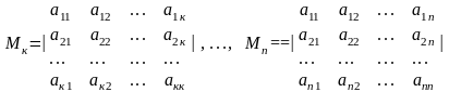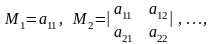 то есть это миноры порядка 1, 2, …, n матрицы А, расположенные в левом верхнем углу, последний из них совпадает с определителем матрицы А.