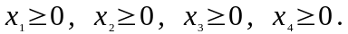 Требуется найти х1, х2, х3, х4, минимизирующие целевую функцию и удовлетворяющие ограничениям (1)–(4).