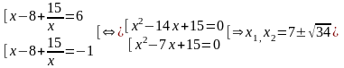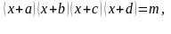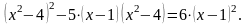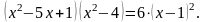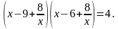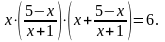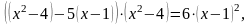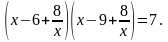 Решение. Видим, что к данному уравнению можно применить ранее указанный нами приём – «раскрытие скобок парами». Суммы чисел, стоящих в первой и четвёртой, во второй и третьей скобках, равны, т.е. 1+5=2+4. Перемножив эти пары скобок, приходим к уравнению: