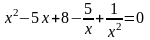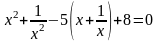 Решение. Можно в этом уравнении освободиться от знаменателя, проделать все необходимые преобразования и убедиться, что получившееся уравнение четвёртой степени является возвратным. Но лучше это сделать быстрее. Поделим числитель и знаменатель дроби, расположенной в левой части, на