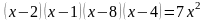 Решение. Заметим, что суммы чисел, стоящих во второй и четвёртой, в первой и третьей скобках, равны, т.е. -7+2=-1–4. Перемножив эти пары скобок, приходим к уравнению